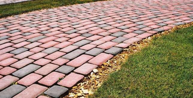 - Для дорожек, ширина которых не больше 117 сантиметров. Данный вариант предполагает укладку камней двух цветов. Основной цвет плитки должен быть в центре, а дополнительный обычно находится по краям. Мастера рассчитывают количество камня таким образом, что второго тона берут 33,3% от всего объема плитки. Для тех случаев, когда заказчики хотят видеть широкое мощение, мастера рассчитывают количество второго тона следующим образом: они берут 0,195 м2 на каждый метр периметра участка.